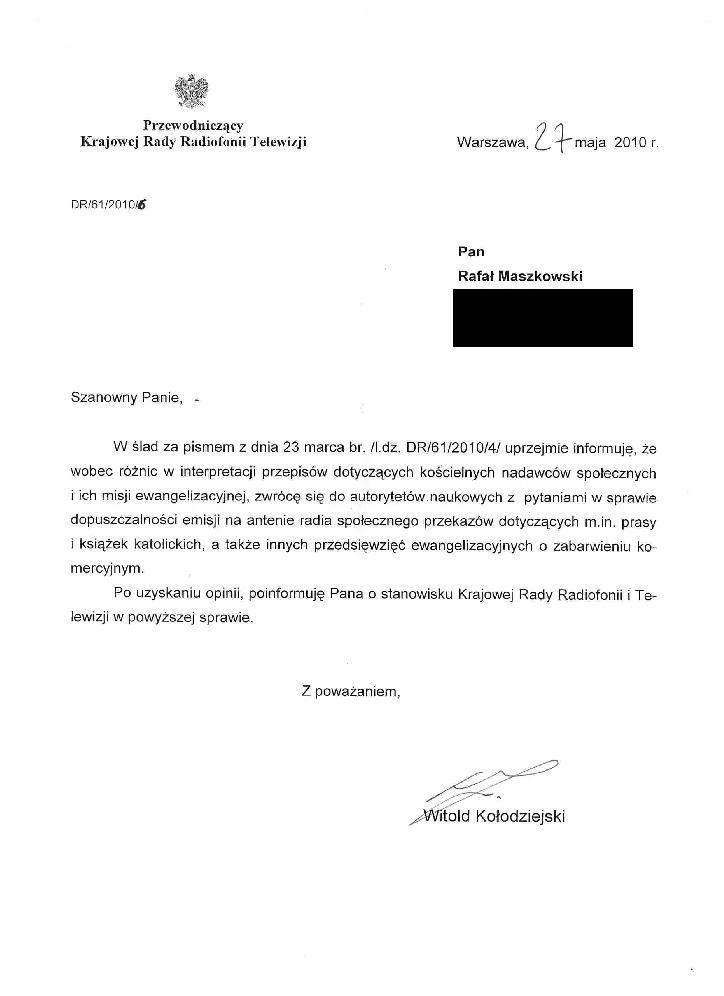 2010-10-20 Przewodniczący KRRiT Jan Dworak wezwał